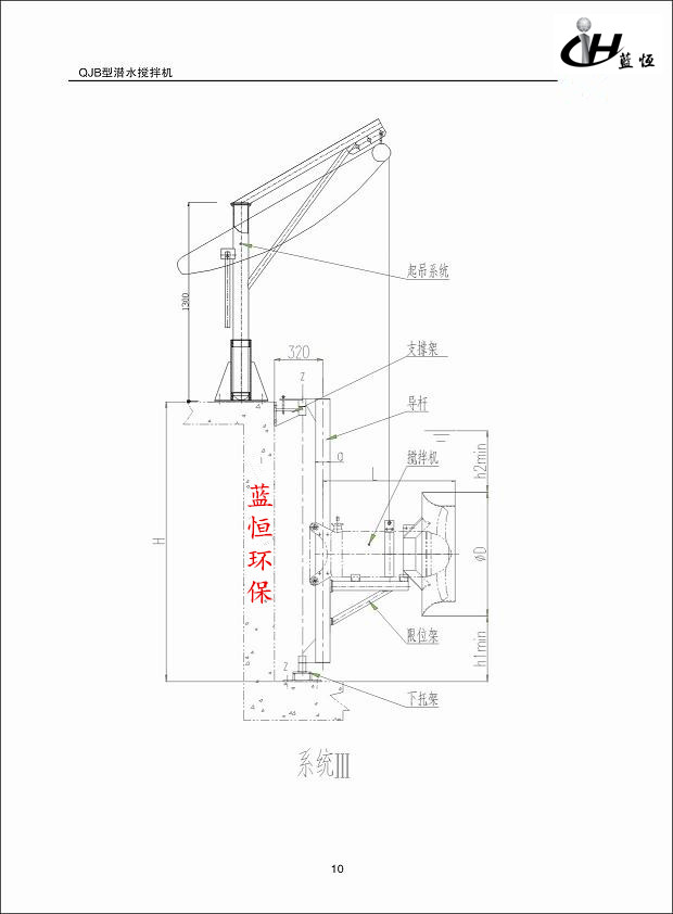 潛水?dāng)嚢铏C(jī)必需完全潛入水中工作;不能在易燃易爆或有強(qiáng)腐蝕性液體的環(huán)境中工作;鋼膨脹螺栓須按要求固定,安裝完畢后,必須將電纜拉緊固定好.