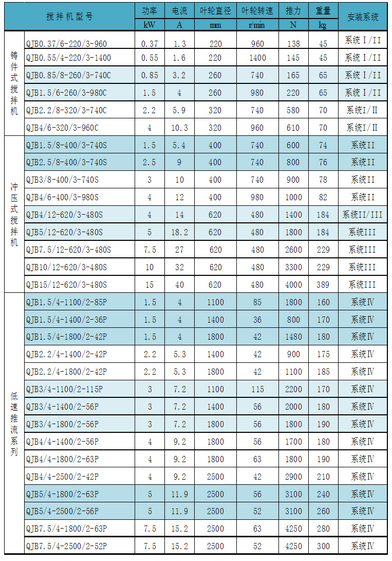 QJB型潛水?dāng)嚢铏C(jī)可分為混合攪拌和低速推流兩大系列。