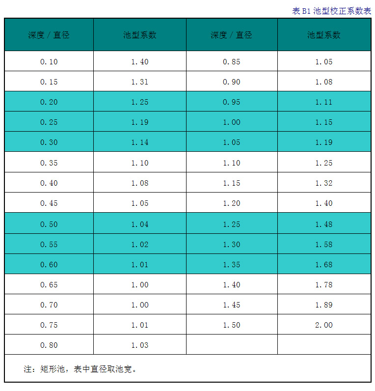 1、根據(jù)圖B1或表B1確定攪拌池的池型校正系數(shù)。
